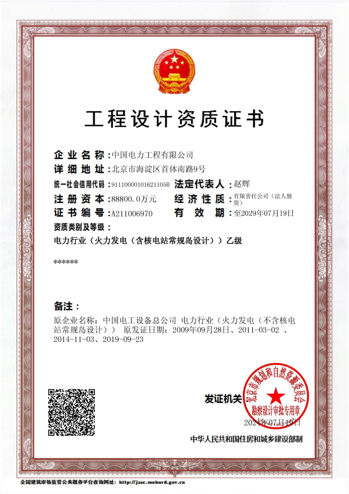 總公司工程設計資質(電力乙級)