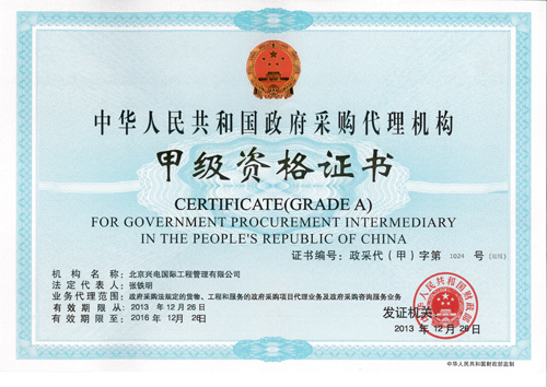 Сертификат на агентирование государственных закупок класса А