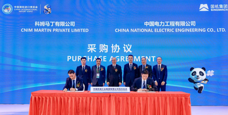 En la tarde del 6 de noviembre, se celebró en el Centro Nacional de Exposiciones y Convenciones de Shanghái la ceremonia de firma del Sinomach en el marco de la VIII Exposición Internacional de Importaciones de China. Con la presencia conjunta de Li Xiaoyu, miembro del Comité Permanente del Comité del Partido y subdirector general del Sinomach; Zhang Yu, director del Departamento de Gestión Operativa del Sinomach; Fang Yanshui, subsecretario del Comité del Partido y director general del Sinomach Engineering; y Ding Dongxing, subdirector general del Departamento de Gestión Operativa del Sinomach Engineering, Yan Weihua, subsecretario del Comité del Partido y director general de CNEEC, y el Sr. DENIS BAUER, director general de CNIM MARTIN PRIVATE LIMITED (en adelante, “CNIM MARTIN”), firmaron un acuerdo de cooperación para la adquisición de equipos completos para el proyecto de generación de energía a partir de residuos en Vietnam. CNEEC actúa como contratista general de ingeniería de este proyecto.